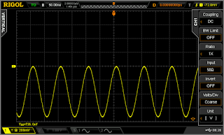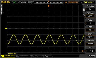 My first observation is that the "Amplitude" setting on the generator has little or no resemblance to the output voltage measured into 50 ohms by the 'scope. The second observation is that there is some weird DC offset in the signal.