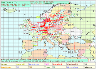 Been messing about today on 6M. There have been quite a few openings over the past few days due to Sporadic E. This was the sporatic e cloud map from DX Maps earlier today: